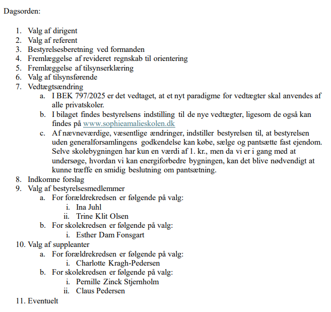 Indkaldelse til ekstraordinær generalforsamling for Sophie Amalie den 4. august 2024.